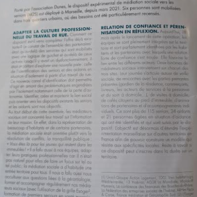 Article sur le tout nouveau dispositif des l'association DUNES auprès des séniors